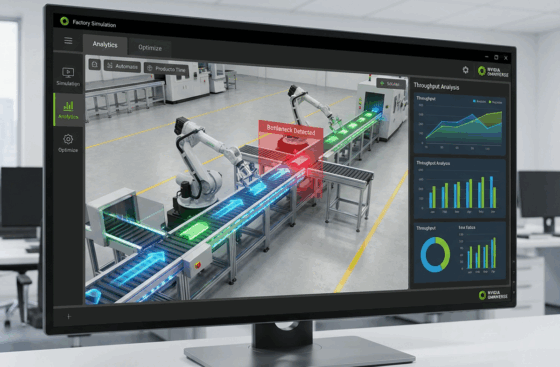 Advanced factory simulation powered by NVIDIA Omniverse.
